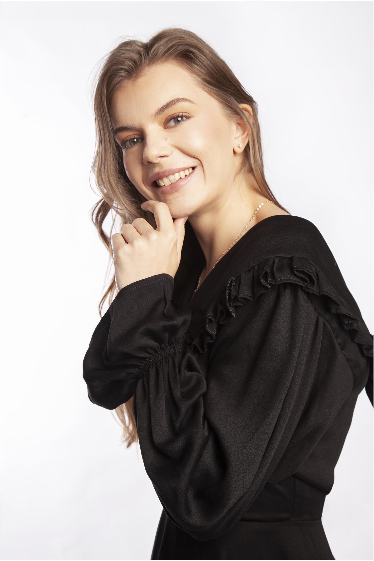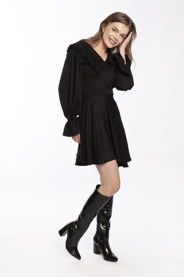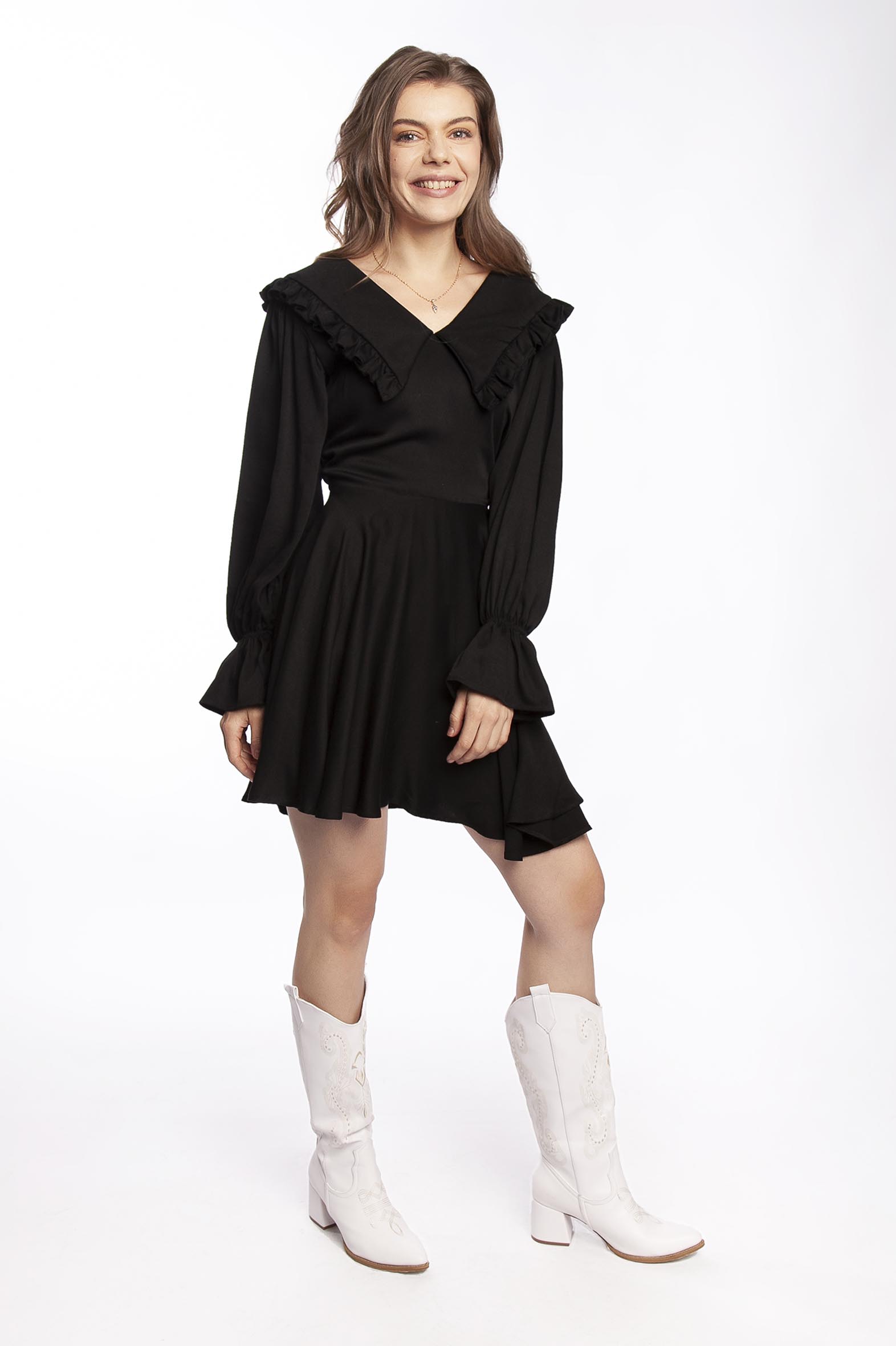 Luce sofisticada y cómoda con este vestido a la rodilla, diseñado para destacar tu estilo en cualquier ocasión. Su cuello en V y mangas largas aportan un toque elegante y atemporal.